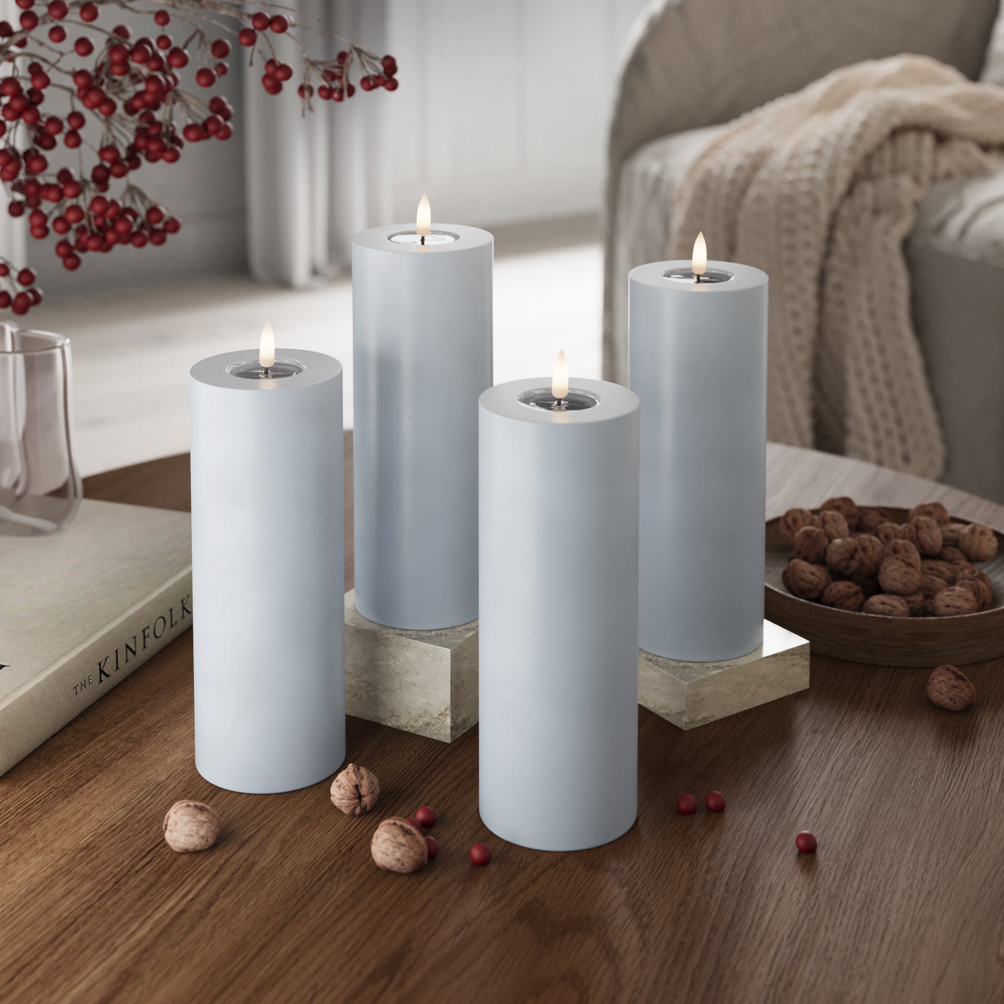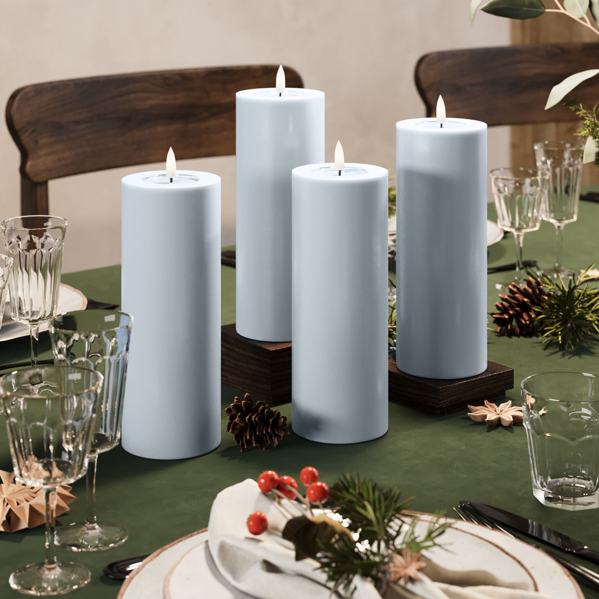 LED Pillar candle Ø 7.5 x 20 cm Dusty Blue - 4 pcs