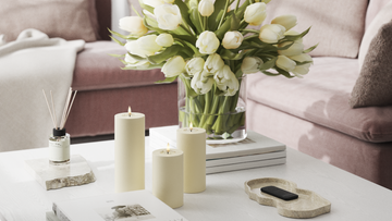 Bloklys er perfekte til dekorationer. Saml dem på et fad, i en lanterne eller i vindueskarmen for en rolig stemning.