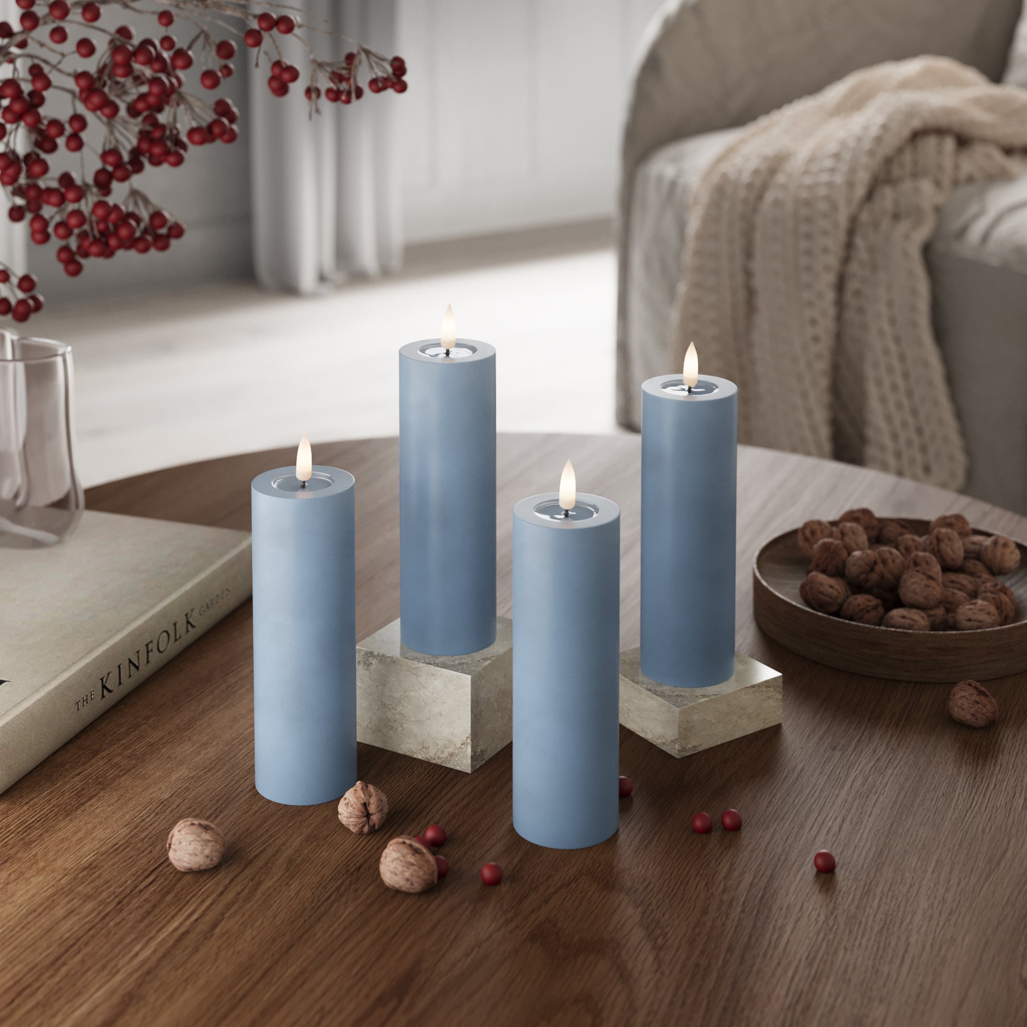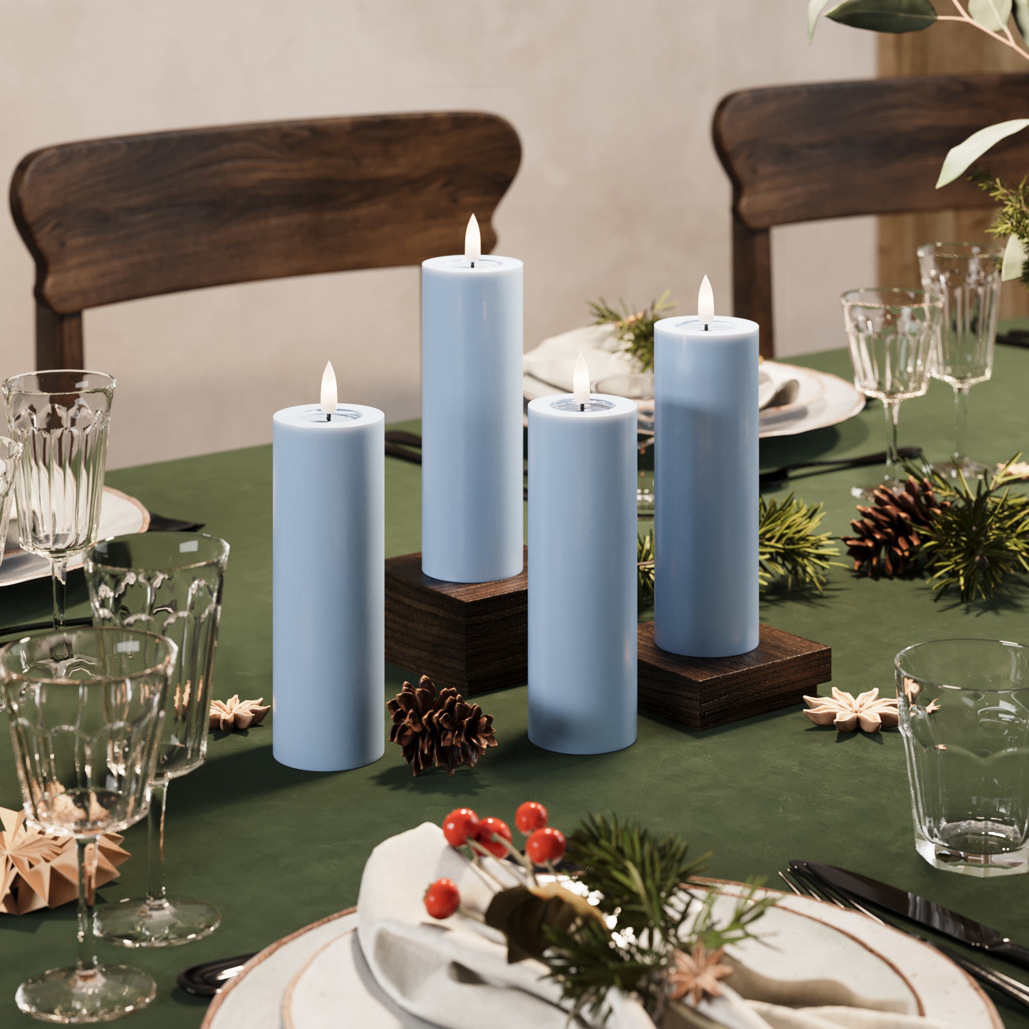 LED Pylväskynttilä Ø 5 x 15 cm Jääsininen - 4 kpl