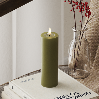 Produktet kan findes i: API dell'impiegato, Autunno, Candela a pilastro - Tutto, GUIDATO Candela a pilastro, GUIDATO Candela a pilastro Ø 5 x 15 cm, Luce indoor a LED, Stagioni, Tutto, Verde oliva